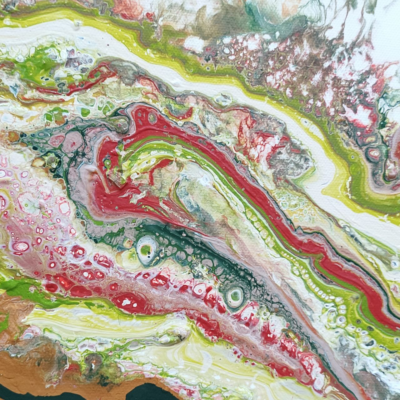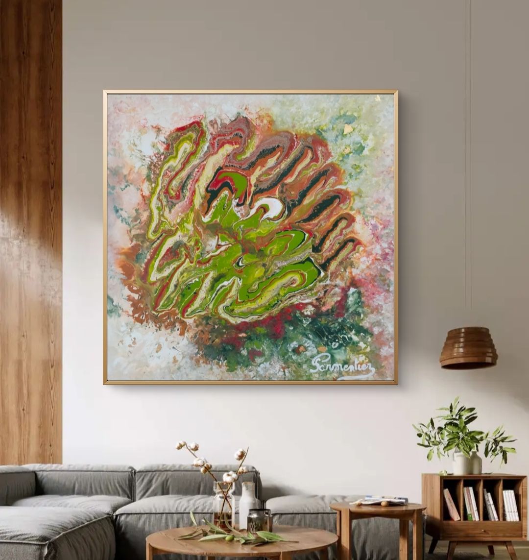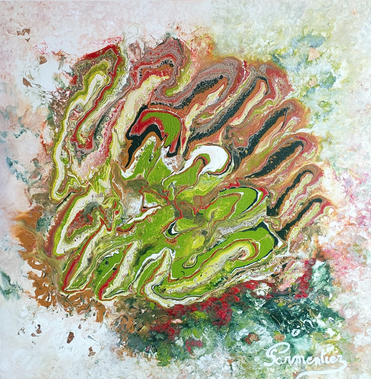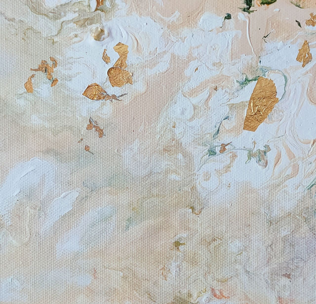 TECHNIQUE : Acrylique AMSTERDAM + Mixed Media appliquée au pinceau et en coulée – Vernis glossy – Feuille à dorer 24 CARATS