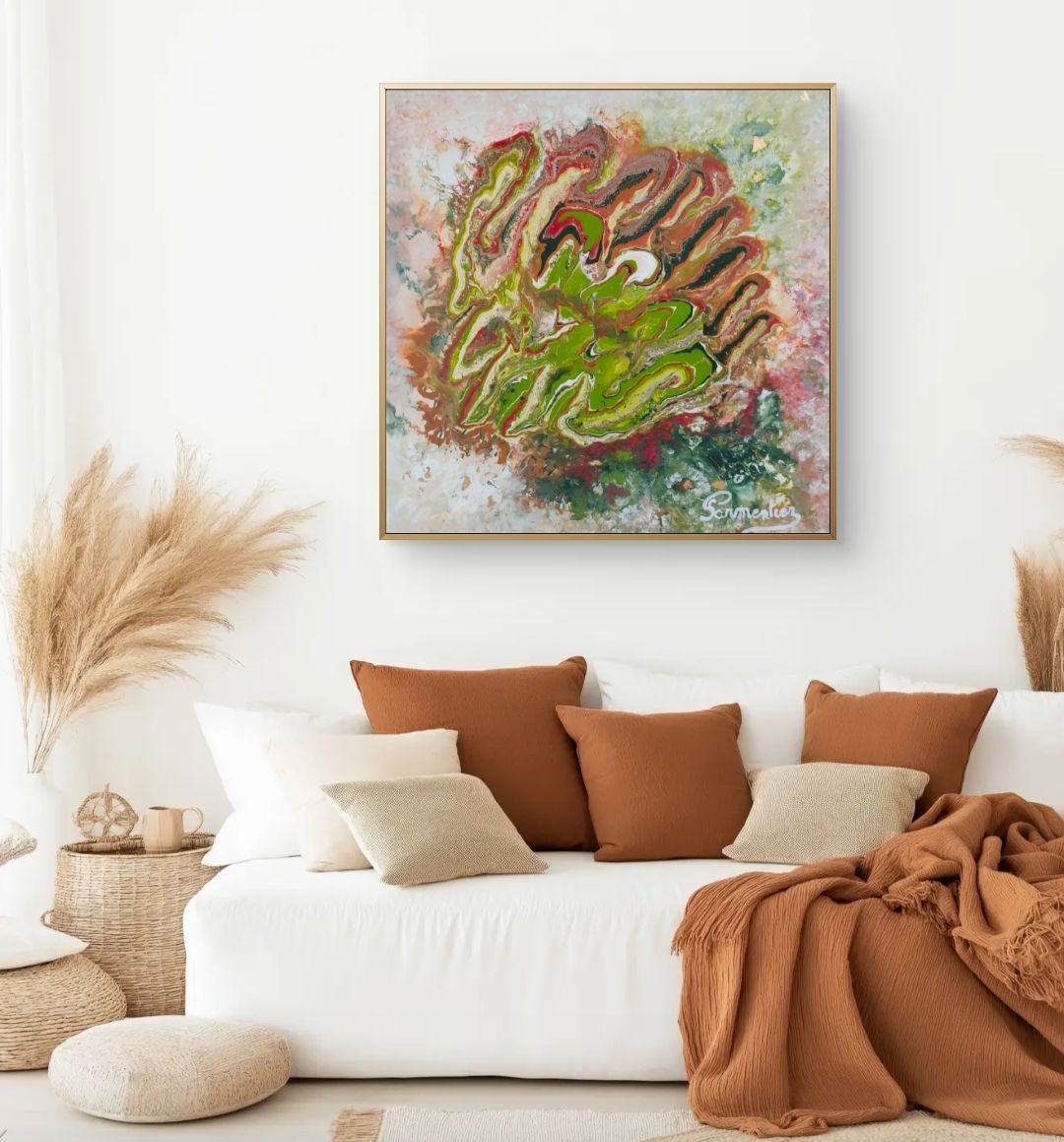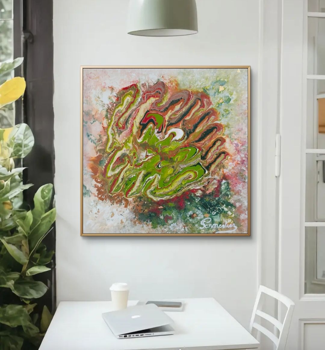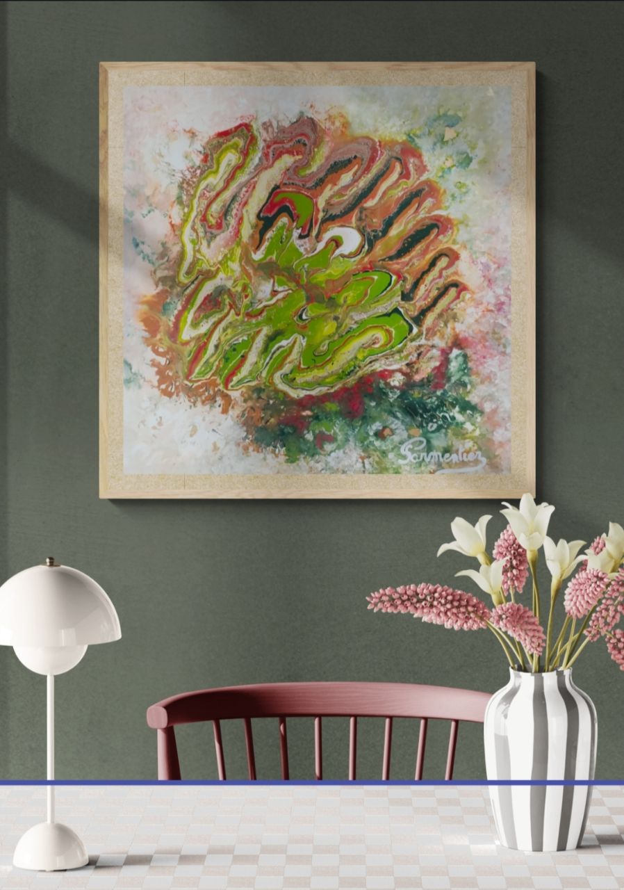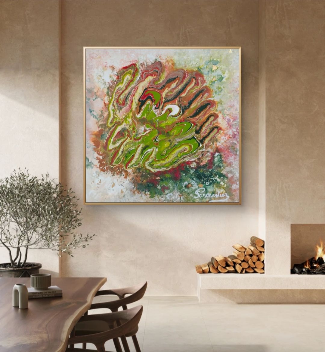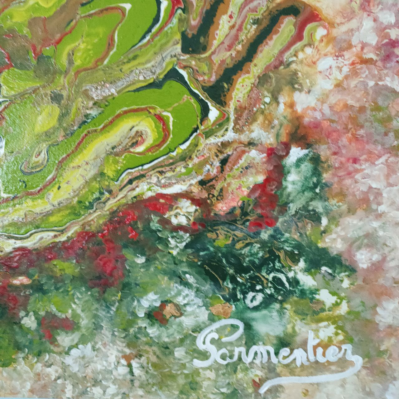 TECHNIQUE : Acrylique AMSTERDAM + Mixed Media appliquée au pinceau et en coulée – Vernis glossy – Feuille à dorer 24 CARATS